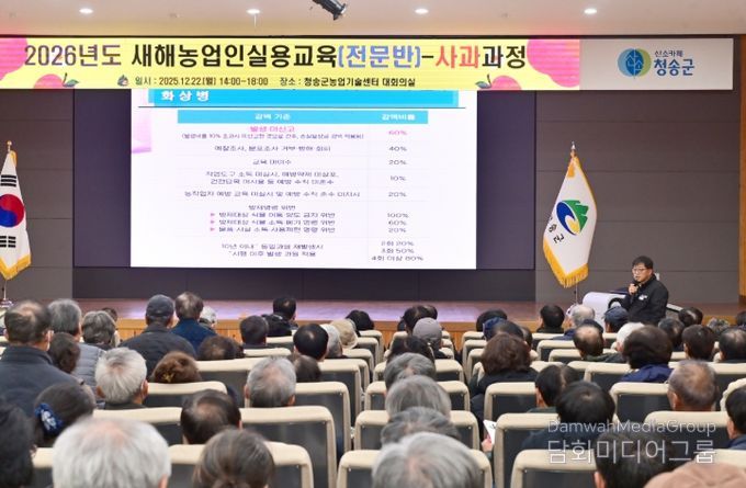 청송군 관계자는 “이번 교육을 통해 농업인들이 2026년도 영농을 보다 체계적으로 준비할 수 있는 기반을 마련했다.”며, “앞으로도 현장 중심의 실용교육을 지속 확대해 농가 실익 향상에 최선을 다하겠다.”고 밝혔다.
