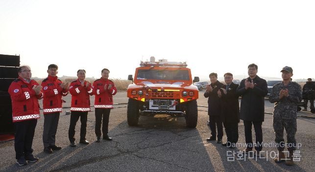 이번에 출고한 다목적 산불진화차량은 산림청·행정안전부·과학기술정보통신부가 공동으로 추진한 연구개발사업의 성과물로, 군(軍) 소형전술차량에 일반 산불진화차의 두 배 이상인 2,000리터의 물탱크를 탑재했다.