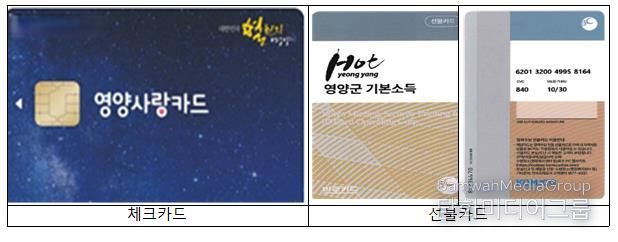아울러, 미성년자, IT 취약계층, 2G 폰 이용자 및 본인명의 휴대전화가 없는 경우 등은 체크카드 발행이 제한 되며 영양군에서 별도 발급하는 선불카드 방식으로 기본소득 지급 될 예정이다.