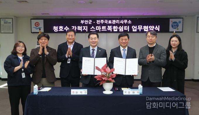 시민행정신문 강갑수 기자 | 부안군은 익산지방국토관리청 전주국토관리사무소와 부안 청호수 간척지 스마트복합쉼터 조성사업의 원활한 추진을 위한 업무협약(MOU)을 체결했다고 밝혔다.