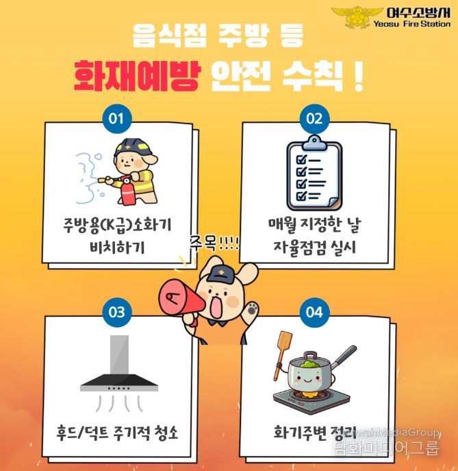 이에 여수소방서는 음식점 주방 화재 예방을 위해 다음과 같은 핵심 안전수칙을 강조했다.