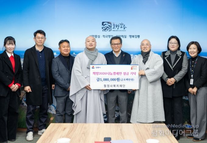 이번 기탁에는 월정사복지재단(대표 남광봉)과 한라시멘트·시멘트산업사회공헌재단(임경태·김영환)이 참석해 희망2026나눔캠페인을 통한 성금을 전달했다.