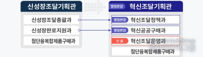 먼저, 기존의 신성장조달기획관을 「혁신조달기획관」으로 개편한다. 이는 막대한 공공구매력을 정책 수단으로 전략적 활용하여 혁신기업의 성장을 지원하는 ‘혁신조달’의 기능을 보다 명확히 하기 위해서다. 기존 소속 부서들의 명칭 또한 담당 업무를 좀 더 직관적으로 이해할 수 있도록 변경한다.