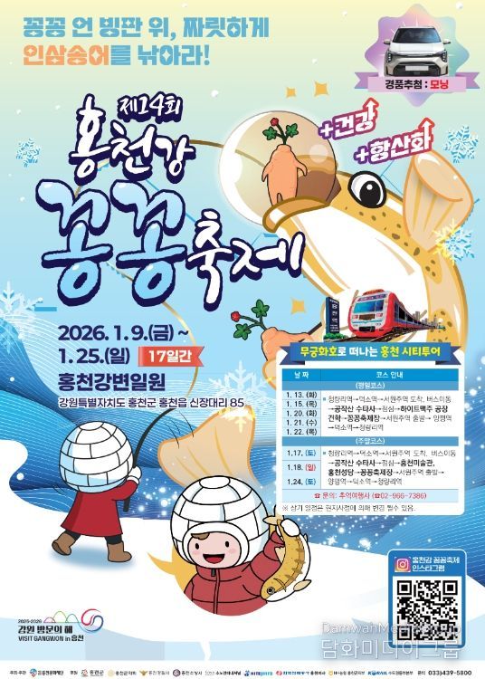 특히 겨울철 대표 축제인 '홍천강 꽁꽁축제'와 연계해, 계절 관광자원과 지역 축제를 결합한 체류형 관광 프로그램으로 구성함으로써 축제 현장에 활력을 더하고 지역 인지도 향상에도 기여할 것으로 기대된다.