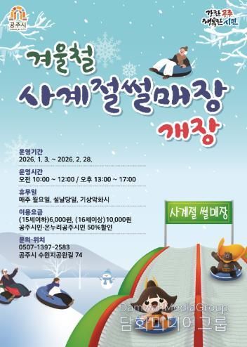 시민행정신문 강갑수 기자 | 공주시는 2026년 겨울철 사계절썰매장을 오는 1월 3일부터 2월 28일까지 운영한다고 밝혔다.