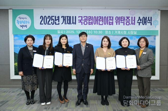시민행정신문 강갑수 기자 | 거제시는 12월 31일, 시장실에서 국공립어린이집 수탁자로 선정된 어린이집에 위탁계약증서를 수여했다.