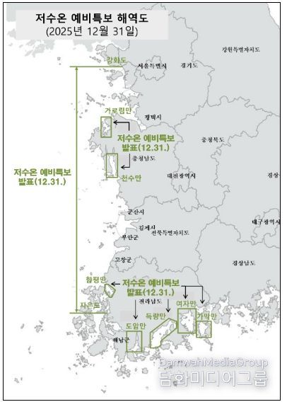 시민행정신문 강갑수 기자 | 해양수산부는 12월 31일 15시부로 저수온 위기경보* ‘주의’ 단계를 발령했다고 밝혔다.