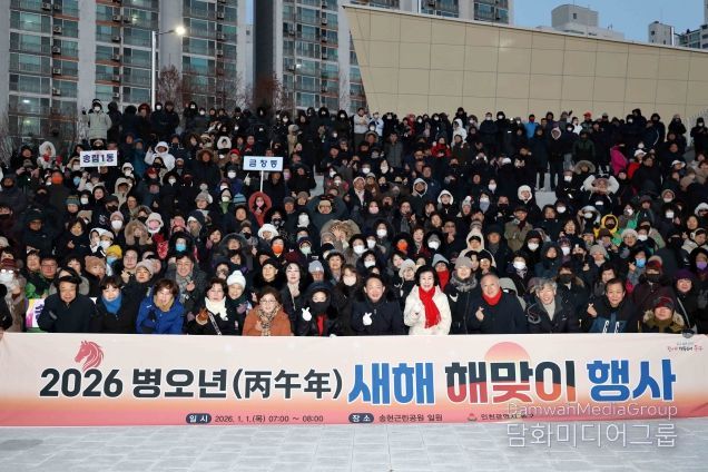 시민행정신문 강갑수 기자 | 인천 동구는 1일 송현근린공원에서 각 동 주민자치회·자생단체 회원 등 다수의 구민이 참여한 ‘2026년 병오년 새해 맞이’행사를 개최했다고 밝혔다.