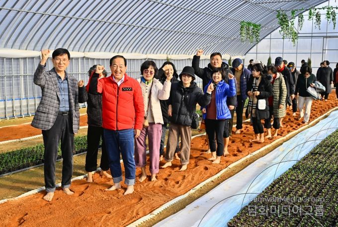 꽃묘장 맨발황톳길은 기존 꽃묘 생산·관리용 비닐하우스 1동을 활용해 총연장 160m, 폭 1.5m 규모의 순환형 황톳길로, 지난해 12월 12일 문을 열었다.