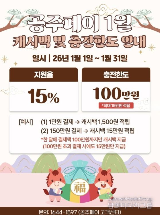 시는 정부가 인구감소지역을 대상으로 2026년 지역화폐 할인 비율을 10% 이상으로 권고함에 따라, 자체 예산을 투입해 공주페이 환급률을 15%로 적용하기로 했다고 설명했다.