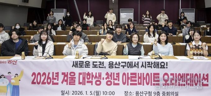 시민행정신문 강갑수 기자 | 서울 용산구는 5일 구청 중회의실에서 ‘2026년 동계 대학생‧청년 아르바이트 오리엔테이션’을 열고, 한 달간의 행정 체험을 시작했다고 밝혔다. 이날 행사에는 선발된 대학생·청년 아르바이트생 40여 명이 참석했다.