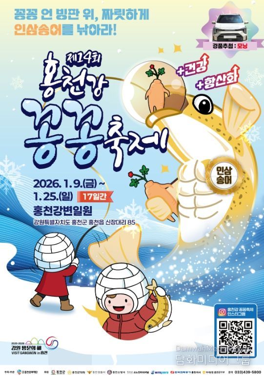 시민행정신문 강갑수 기자 | 제14회 홍천강 꽁꽁축제가 오는 1월 9일부터 1월 25일까지 17일간 홍천 강변 일원에서 열린다.
