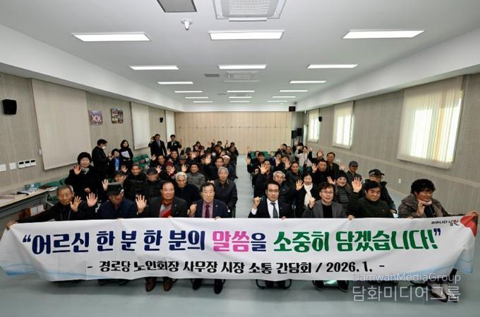 간담회는 ▲2026년 노인복지 주요사업 제작 영상 ▲스마트경로당 홍보영상 시청으로 시작해, 어르신들이 정책 내용을 쉽게 이해할 수 있도록 구성됐으며, 이후 자유로운 분위기 속에서 시장과 직접 소통하는 간담회가 이어졌다.
