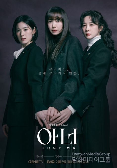 시민행정신문 김학영 기자 | 지니 TV 오리지널 드라마 ‘아너 : 그녀들의 법정’ 이나영X정은채X이청아가 거대한 스캔들에 정면 돌파한다. 세 변호사의 ‘부서져도, 끝내 무너지지 않는’ 결연한 연대를 암시하는 메인 포스터가 전격 공개됐다.