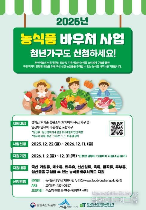 이기풍 우리농산물유통과장은 “농식품 바우처 사업이 농산물 유통 활성화에도 도움이 되도록 신규 대상자 홍보와 사용처 확대 등 사업 운영에 최선을 다하겠다”고 말했다.
