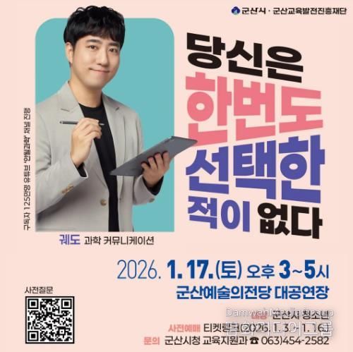 강연은 군산시 청소년을 대상으로 무료로 진행되며, 사전예매는 1월 16일까지 티켓링크를 통해 가능하다.