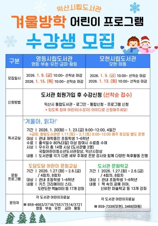 시민행정신문 강갑수 기자 | 익산시가 겨울방학을 맞은 초등학생들을 위해 독서와 체험이 어우러진 다채로운 프로그램을 마련했다.
