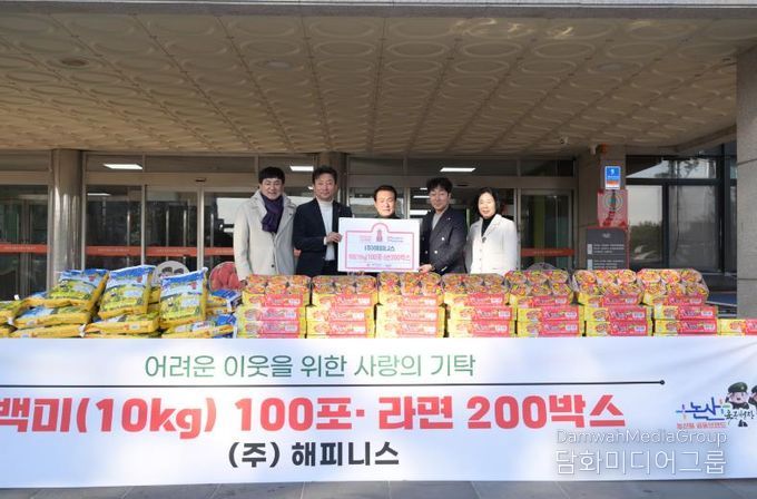 시민행정신문 강갑수 기자 | 논산시는 7일 ㈜해피니스가 백미(10kg) 100포와 라면 200박스 등 총 500만 원 상당의 물품을, 사회적협동조합 공유에서 이웃돕기성금 200만원을 기탁했다고 밝혔다.