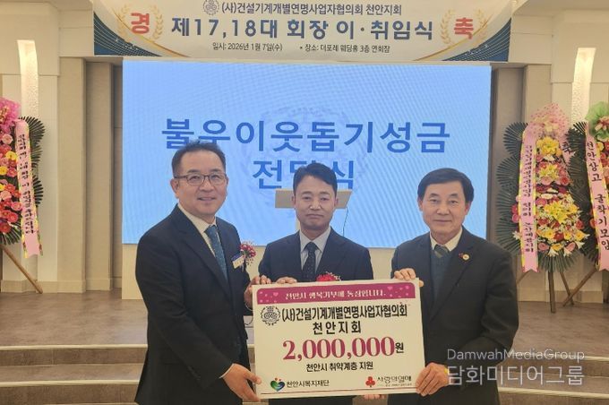 시민행정신문 강갑수 기자 | (재)천안시복지재단은 ㈔건설기계개별연명사업자협의회 천안지회가 취약계층을 위한 후원금 200만 원을 기탁했다고 8일 밝혔다.