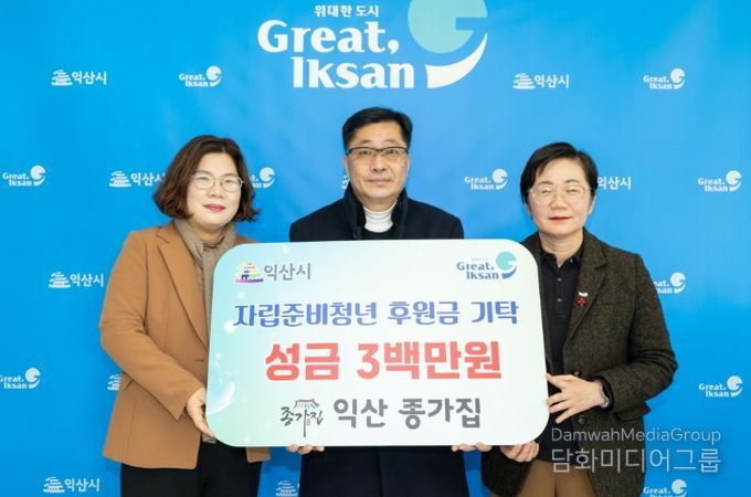 익산시는 8일 '종가집(대표 김경일)'으로부터 자립준비청년을 위한 성금 300만 원을 기탁받았다.