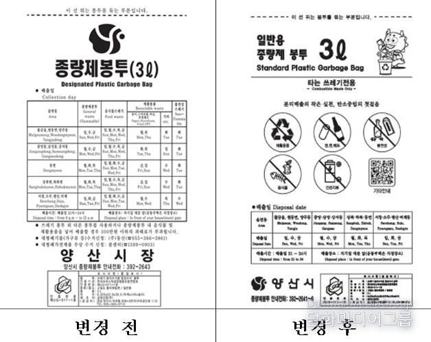 시민행정신문 김학영 기자 | 양산시가 종량제 시행 이후 큰 변화 없이 유지해 온 쓰레기 종량제 봉투 디자인을 전면 개편한다.