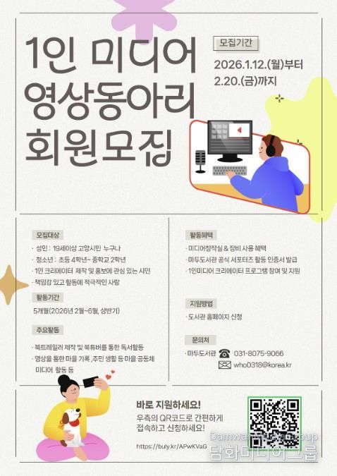 고양특례시 마두도서관이 미디어 창작실을 기반으로 한‘1인 미디어 영상동아리’를 2월부터 6월까지 운영한다. 영상동아리를 통해 지역주민을 마을의 문화와 역사를 기록하는 시민활동가로 성장시키고, 청소년은 물론 고양시민의 독서경험을 영상으로 확장하고 사회적으로 공유하는 새로운 시도에 나선다.