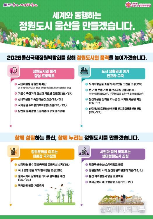 시민행정신문 강갑수 기자 | 울산시가 2026년 한 해 동안 정원도시의 품격을 높이고 시민과 함께 성장하고 누리는 ‘세계와 동행하는 정원도시 울산’ 만들기에 총력을 기울인다.