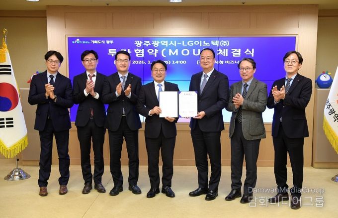 시민행정신문 강갑수 기자 | 광주광역시와 LG이노텍은 13일 시청 비즈니스룸에서 ‘차량용 제어모듈 신규 생산라인 구축을 위한 투자협약’을 체결했다. 이번 협약은 2026년 새해 부강한 광주로의 힘찬 도약을 알리는 첫 신호탄이다.