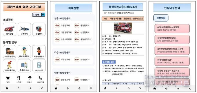 김천소방서는 현장 중심의 신속하고 정확한 업무 수행을 지원하기 위해 내부 전용 모바일 애플리케이션 '김천소방서 업무 가이드북'을 자체 제작하여 본격 운영에 들어갔다.