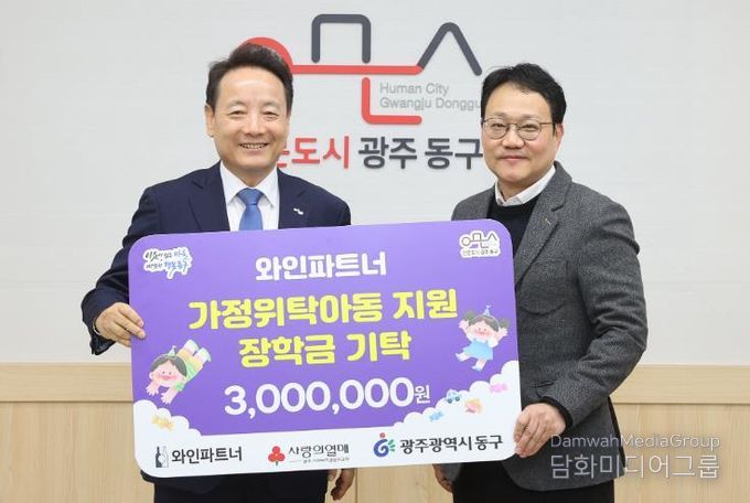시민행정신문 강갑수 기자 | 광주 동구는 지난 13일 와인파트너(대표 권홍식)로부터 가정위탁아동을 위한 장학금 3백만 원을 기탁받았다고 밝혔다.
