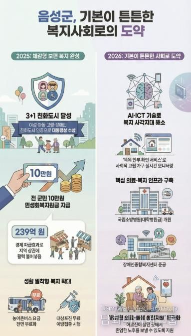 시민행정신문 강갑수 기자 | 음성군이 지난해 소외 계층 없는 ‘포용적 복지 도시’를 완성한 데 이어, 올해는 군민의 삶을 세심하게 살피는 ‘기본이 튼튼한 사회’로 질적 도약을 예고했다.