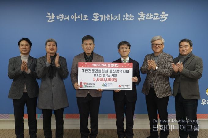 천창수 교육감은 “해마다 따뜻한 나눔을 실천해 주신 대한전문건설협회 울산광역시회에 감사드린다”라며 “학생들이 어려운 여건 속에서도 학업에 전념하며 자신의 꿈을 키워가는 데 큰 힘이 될 것”이라고 말했다.