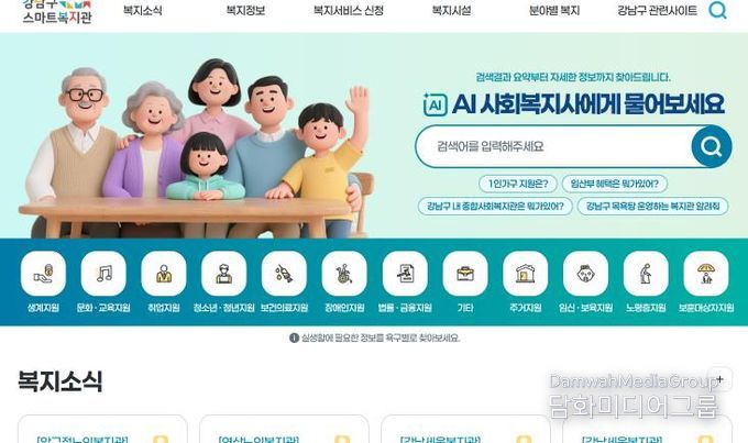 시민행정신문 강갑수 기자 | 꿈이 모이는 도시, 미래를 그리는 강남구가 2024년 7월 구축한 통합 복지플랫폼 ‘강남구 스마트복지관’의 검색·상담 기능을 고도화했다. 구는 고도화된 서비스를 올해부터 새롭게 운영한다.