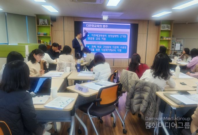 이번 연수는 다문화교육 분야의 전문가인 오성배 동아대학교 교수를 초빙해 총 15시간의 직무연수 과정으로 운영되며 다문화사회에 대한 이해와 이주배경학생의 유형별 성장 실태 분석부터 실제적인 학교 컨설팅 방안까지 이론과 실습을 함께 구성했다.