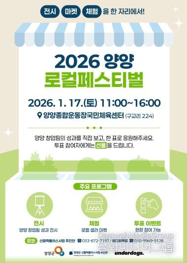 시민행정신문 기자 | 양양군은 오는 1월 17일 오전 11시부터 오후 4시까지 양양종합운동장 국민체육센터에서 『신활력 창업도약 2026 양양 로컬페스티벌』을 개최한다.