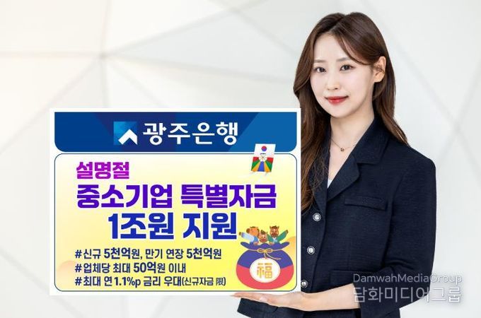 시민행정신문 강갑수 기자 | 광주은행은 설 명절을 앞두고 자금 운용에 어려움을 겪는 지역 중소기업 및 소상공인을 위해, 1월 15일부터 2월 27일까지 총 1조 원 규모의 ‘2026년 설 명절 중소기업 특별자금’을 지원한다고 밝혔다.