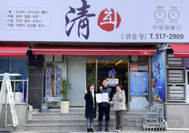 이번 협약에 따라 청 횟집은 음식 제공에 협력하는 한편, 생활밀착형 식당으로서 주민과의 일상적 접점 속에서 위기 징후가 의심되는 가구를 발견할 경우 행정복지센터와 연계하는 역할도 함께 수행할 예정이다.