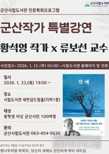 시민행정신문 강갑수 기자 | 군산시립도서관에서 22일 저녁 7시 한국 문학의 거목 황석영 작가를 초청하여 ‘군산작가 특별강연’이 열린다.