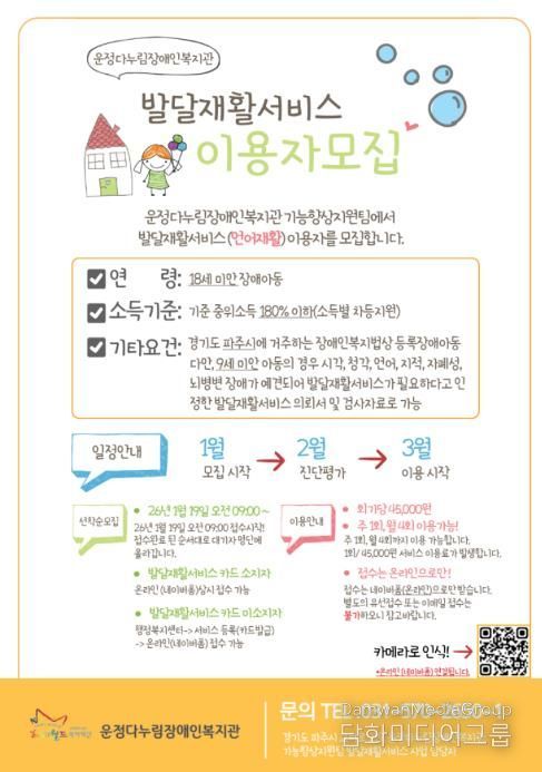 운정다누림장애인복지관의 ‘발달재활서비스’는 언어발달 지연과 의사소통에 어려움을 겪는 장애 아동에게 전문적인 언어재활서비스를 제공함으로써 일상생활 적응을 지원하기 위해 마련된 프로그램이다.
