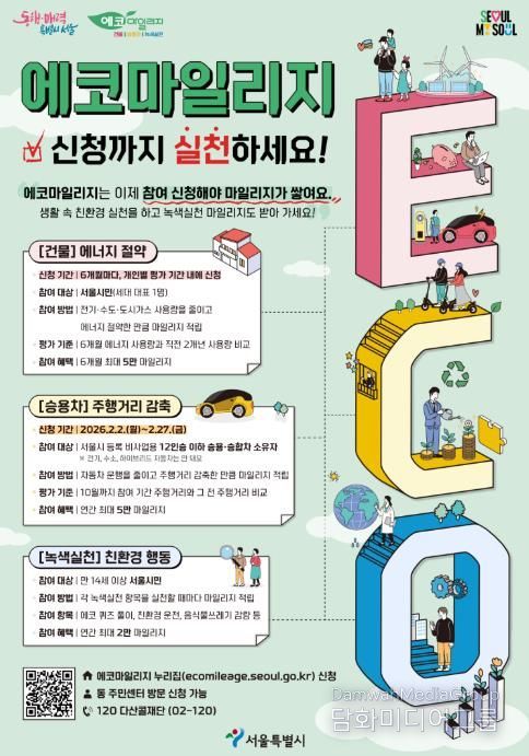 또한 음식물쓰레기 감량이나 친환경 운전 습관 실천 시 최대 5,000마일리지(5,000원 상당)를 지급하는 ‘녹색실천 마일리지’ 항목이 신설됐다. 이 밖에도 에코 퀴즈 참여, 서울시 주관 환경교육 또는 기후 관련 온·오프라인 행사 참여 시 마일리지가 지급된다.