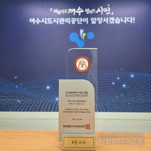여수시도시관리공단 이사장은 “이번 인증은 임직원 모두의 신뢰와 협력으로 이룬 성과”라며 “건전한 노사관계를 통해 공공기관으로서 모범을 다하겠다”라고 말했다.