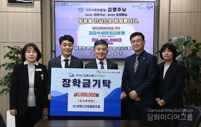 시민행정신문 강갑수 기자 | 김제사랑장학재단은 19일 김제수산업협동조합(조합장 김영주)과 새만금장례식장(대표 김덕운)이 지역 인재 육성을 위한 장학금으로 각각 500만 원과 300만 원을 기탁했다고 밝혔다.