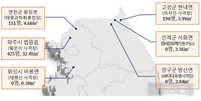 지정·고시 예정 지역은 파주시 멀은이 사격장, 고성군 마차진 사격장, 연천군 태풍과학화 훈련장 등으로 총 48.3 ㎢의 소음대책지역에 약 770명의 주민이 보상을 받을 예정이다.