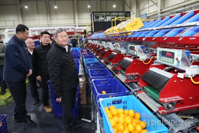이날 김 시장은 레드향 등 만감류의 유통 동향과 가격 상황을 살펴보고, 하귀농협 스마트 APC의 AI 카메라·비파괴 광센서 기반 선별시스템, 포장·출하 공정 등을 직접 확인했다.
