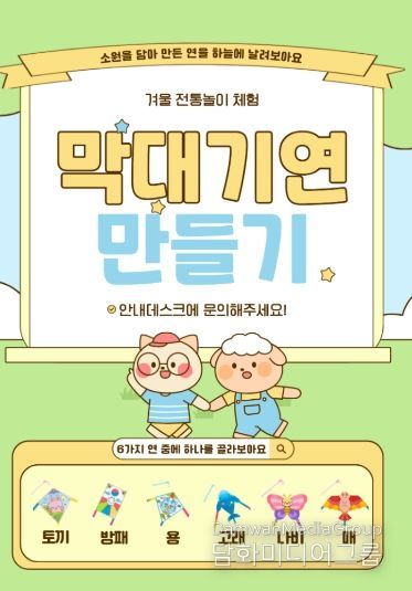 전시에서는 연의 유래와 역사, 전통 연에 담긴 다양한 상징과 뜻을 살펴볼 수 있으며, 겨울과 설날이라는 계절적 분위기에 맞춰 전통 세시풍속을 친근하게 이해할 수 있도록 구성했다.