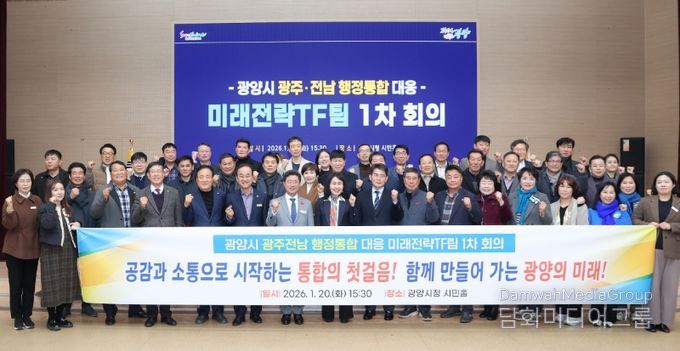시민행정신문 강갑수 기자 | 광양시는 1월 20일 시청 시민홀에서 '광양시 광주·전남 행정통합 대응 미래전략 TF팀' 1차 회의를 열고, TF팀원 및 관계자 100여 명이 참석한 가운데 행정통합 대응 방향에 대한 논의를 시작했다고 밝혔다.
