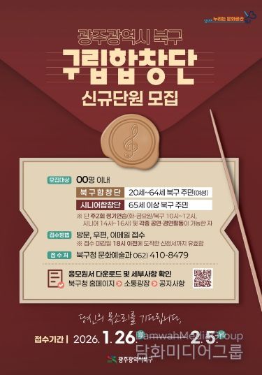 시민행정신문 기자 | 광주광역시 북구가 아름다운 목소리로 주민들과 소통하는 구립합창단 신규 단원을 모집한다고 21일 밝혔다.
