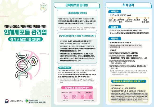 시민행정신문 이존영 기자 | 식품의약품안전처와 첨단바이오의약품 규제과학센터(한국의약품안전관리원)는 인체세포등 관리업과 첨단재생의료세포처리시설 제도 전반을 체계적으로 정리한 안내 자료를 1월 21일 마련했다고 밝혔다.