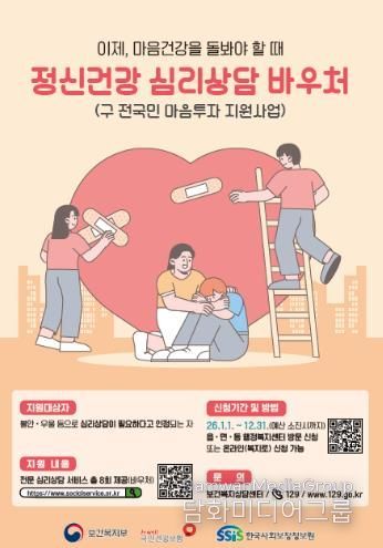 시민행정신문 강갑수 기자 | 대전 동구는 구민의 마음 건강 회복을 지원하는 ‘2026년 정신건강 심리상담 바우처 사업’을 본격 시행한다고 23일 밝혔다.