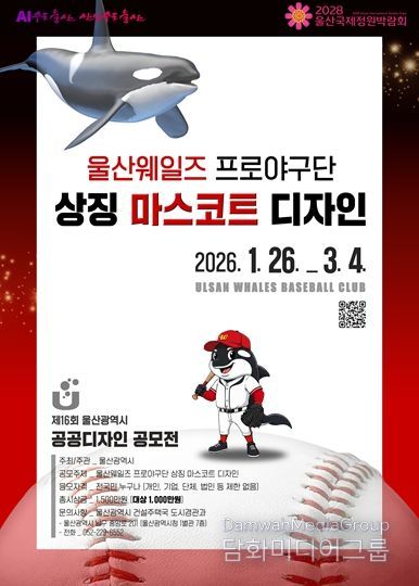 시민행정신문 강갑수 기자 | 울산시는‘울산웨일즈 프로야구단 상징 마스코트 디자인’을 공모 주제로‘제16회 울산광역시 공공디자인 공모전’을 개최한다고 밝혔다.